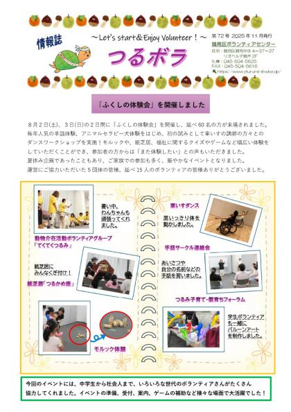 鶴見区ボランティアセンター情報紙「つるボラ」第72号を発行しました。